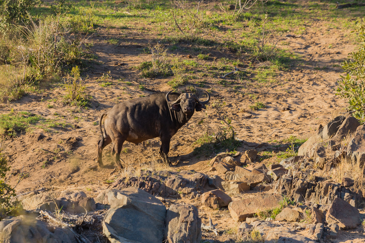 In the afternoon, we found buffalo by a stream.