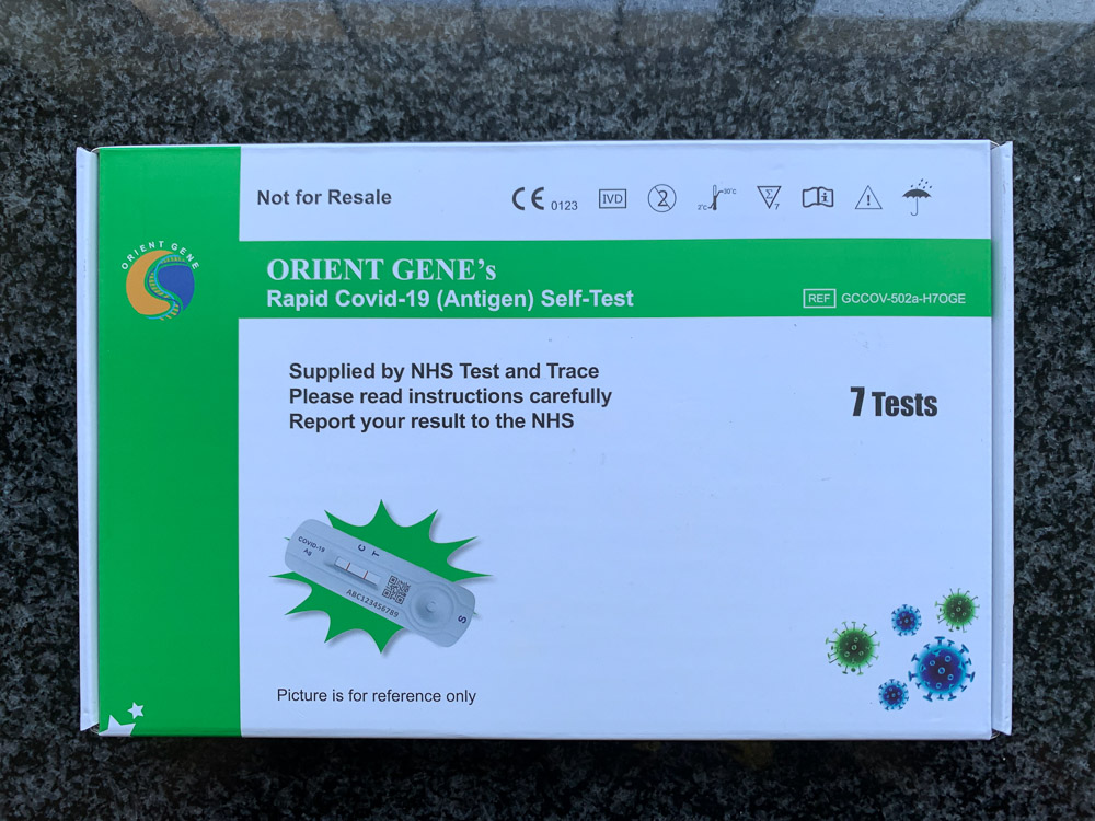 Every morning everyone takes a COVID test. It definitely gives me some comfort. They’re free in the UK so we all have a stack of these boxes: 7 tests per box.