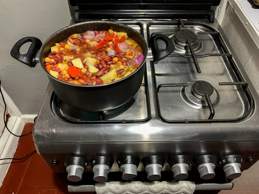 Back to napping and doing nothing, then it got dark and I decided to make a veggie stew for future dinners. (I’m not sure the motivation was to not have to eat fast food again, but maybe….)