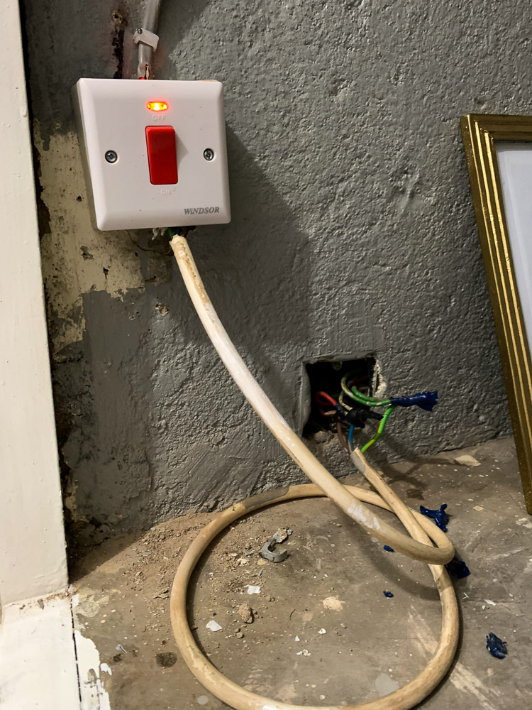 There’s a power switch in a closet that turns on the instant hot water heater. Complete with sketchy wiring!