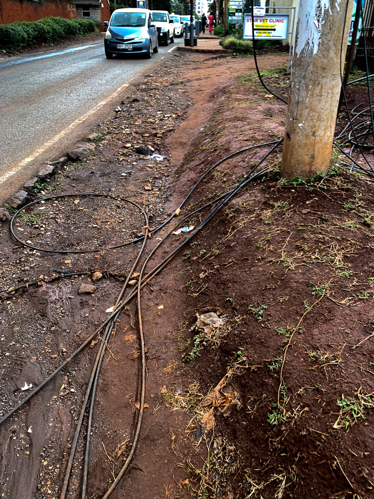 Went for a really short walk mid-afternoon during a break in the rain. Had to think about how to navigate the mud and cars and wires.