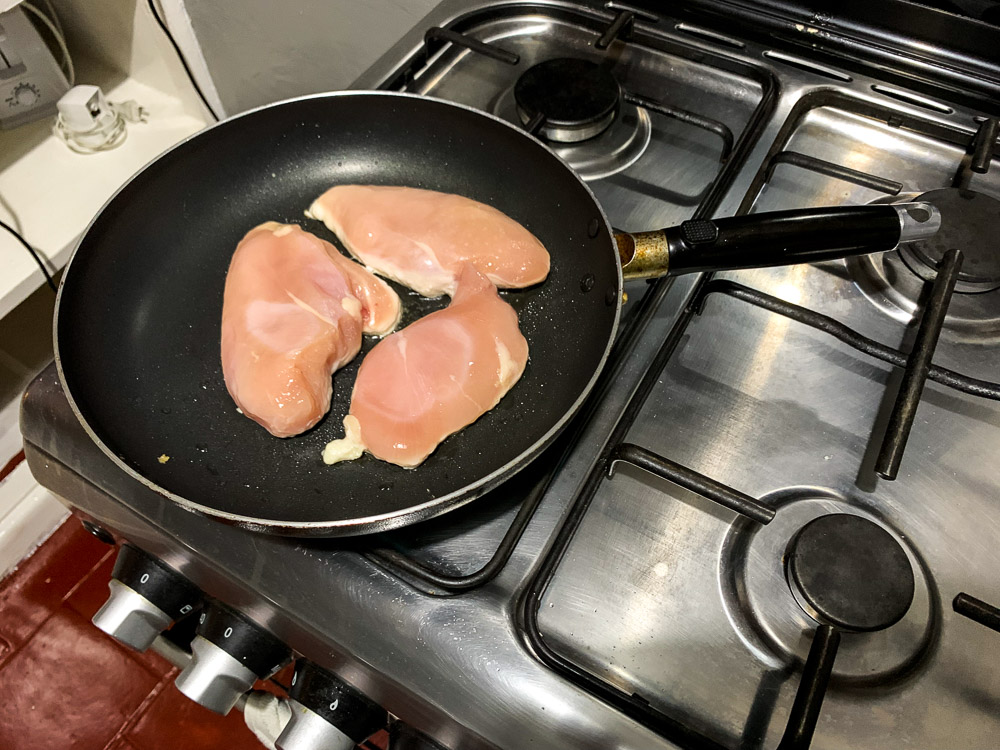 Nothing else to do but eat. I cooked a few chicken breasts, put one in a tortilla with cheese, and called it good enough for 10pm.