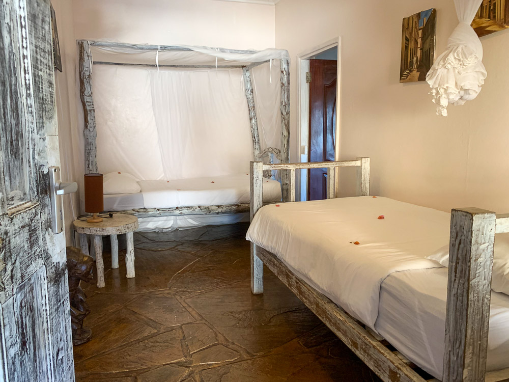 Less than an hour flight into Mombasa, then an hour plus drive to Diani.