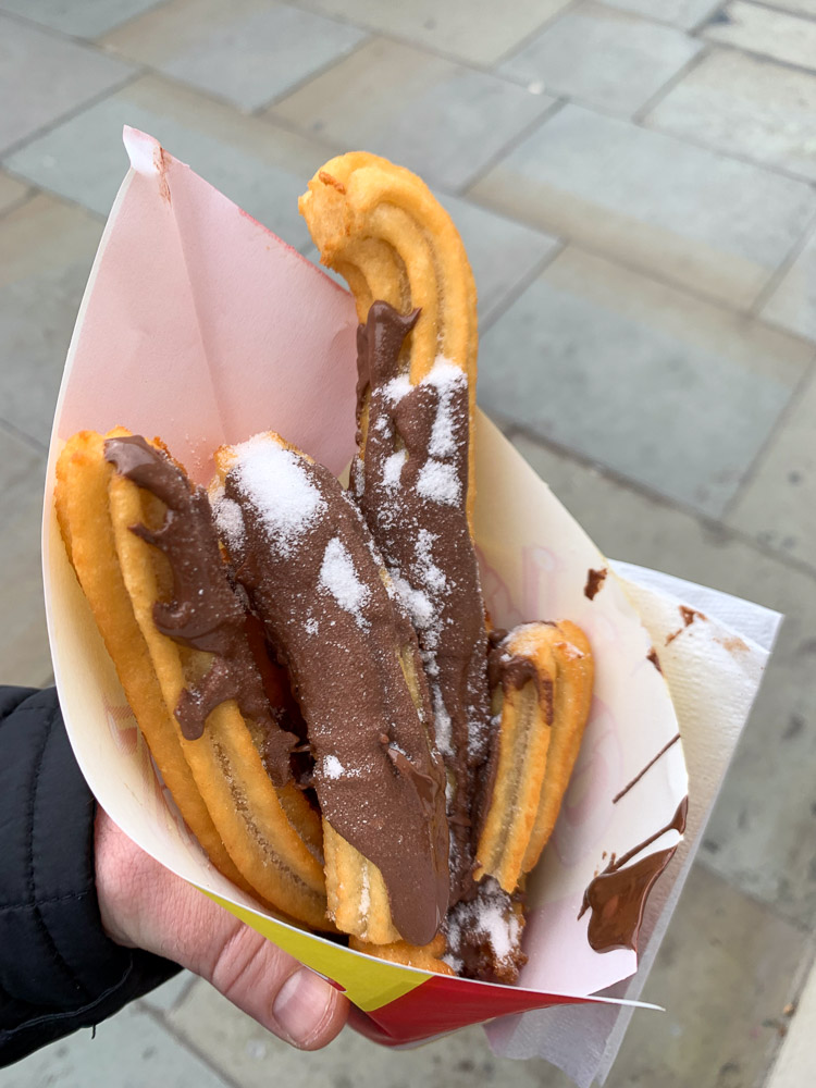Trafalgar Square isn’t far from there, and I had a memory of seeing people walking around with churros. So…