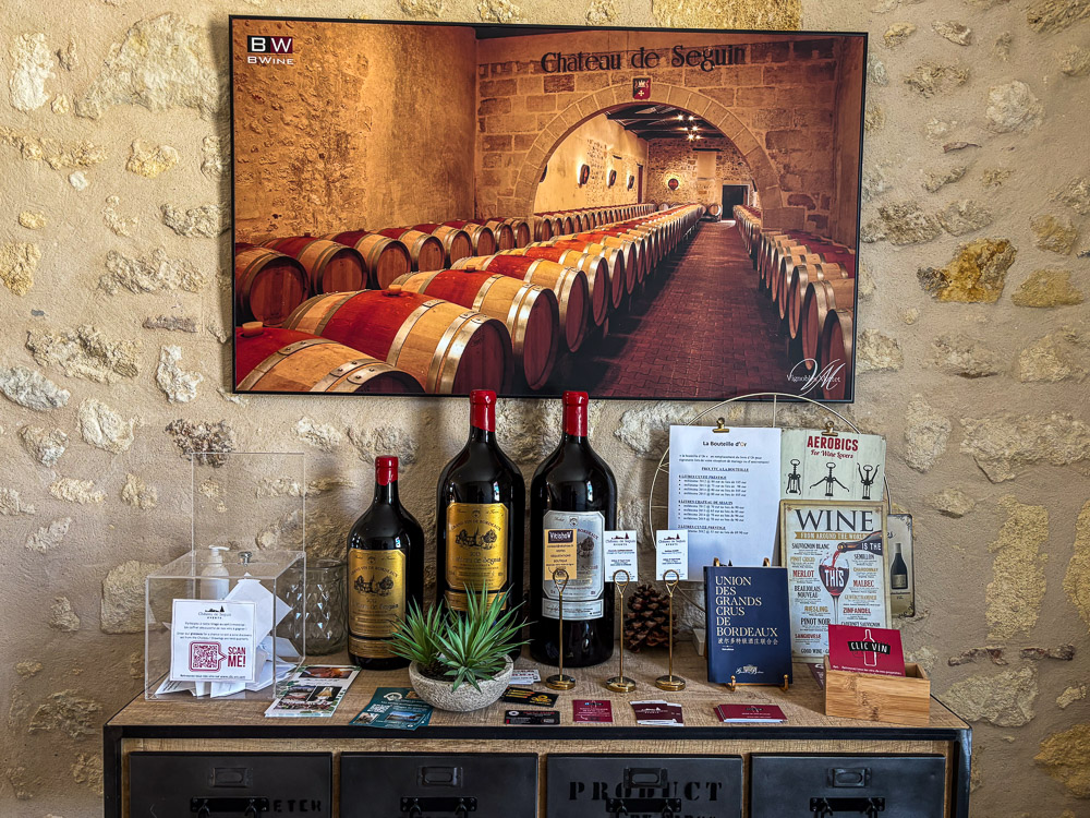 The property had been turned into a winery. Bottles and barrel decorations everywhere.