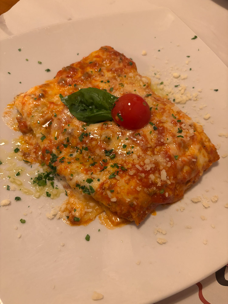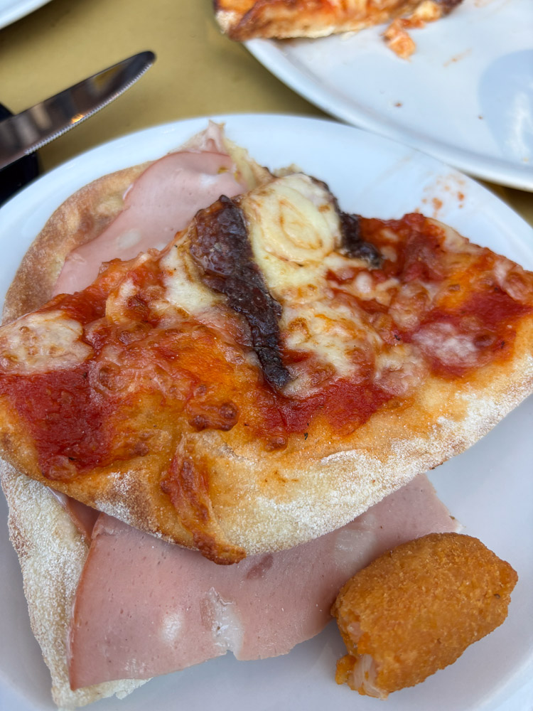 Now, food. Lunch was Roman-style pizza and dinner was lasagna.