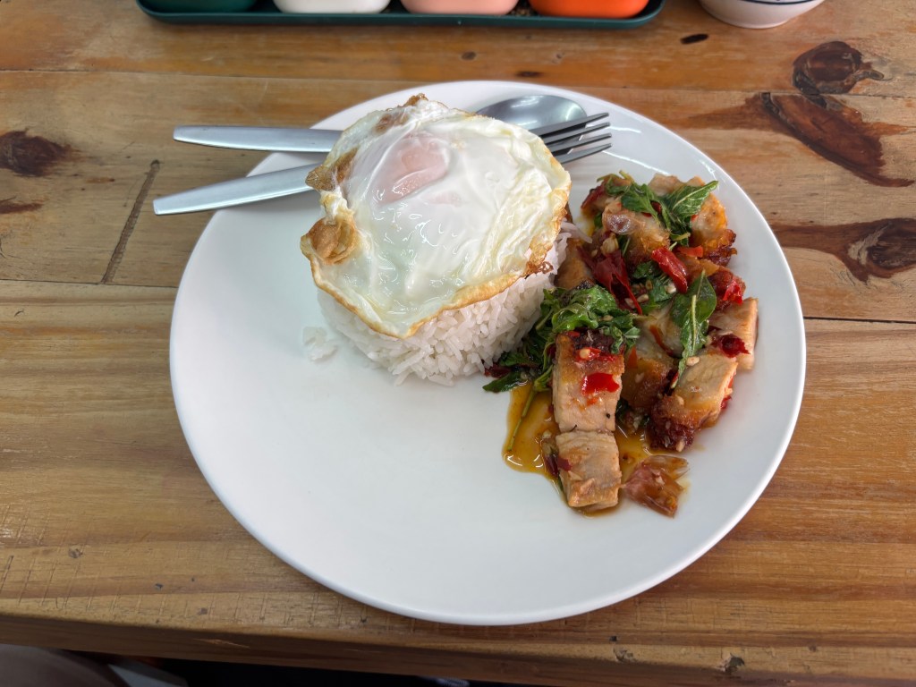 I have a new favorite food: Pad Kra Pao. The Thai stir-fried basil dish. Got it today from a small shop. They asked for my desired spice level. I said “medium” and it didn’t get me at all! It just tasted wonderful!