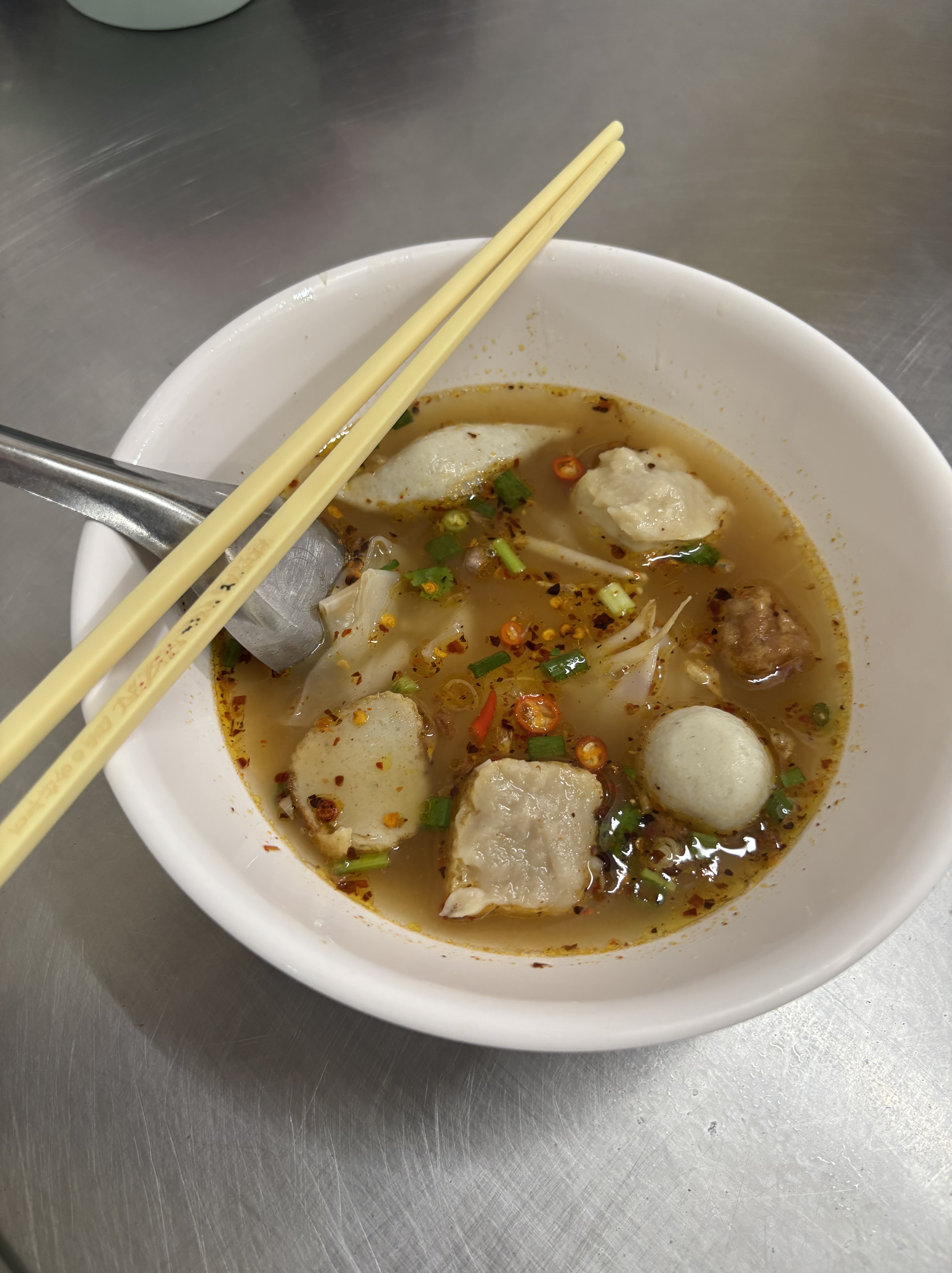Some more food once my stomach settled. A mint milk tea, which tasted like mint ice cream. No idea what the other dish is called (nothing was in English). I pointed at a noodle type and said “average spicy.” It was the spiciest thing I’ve had yet. Still not the terrifying spice level I was fearing.