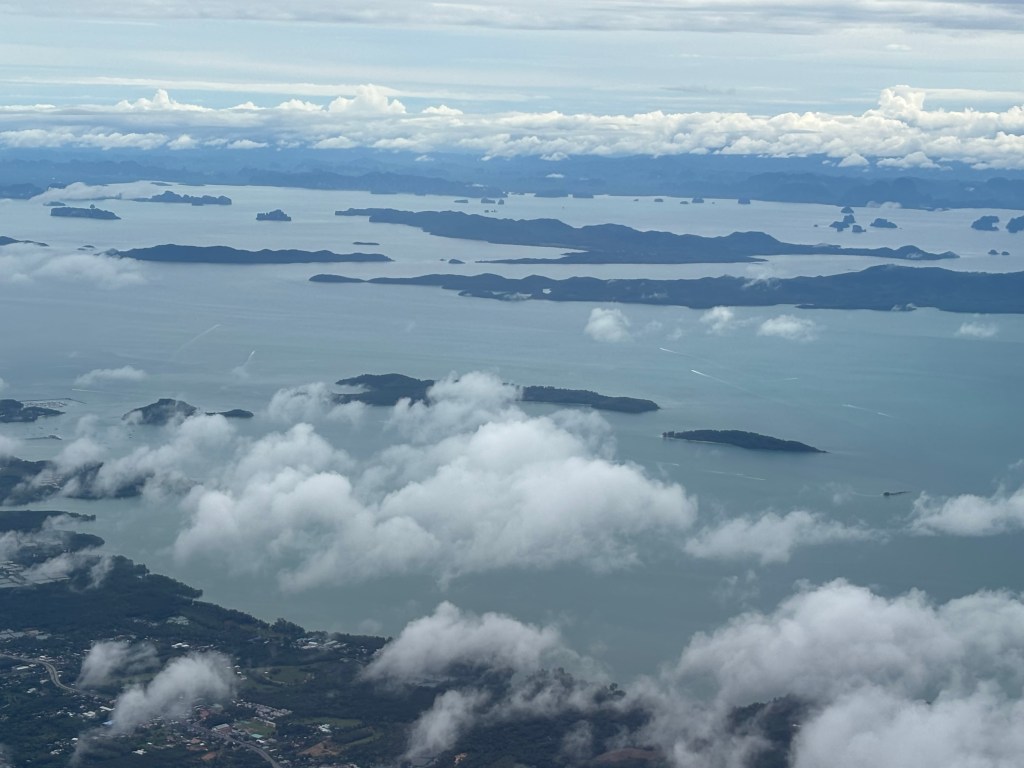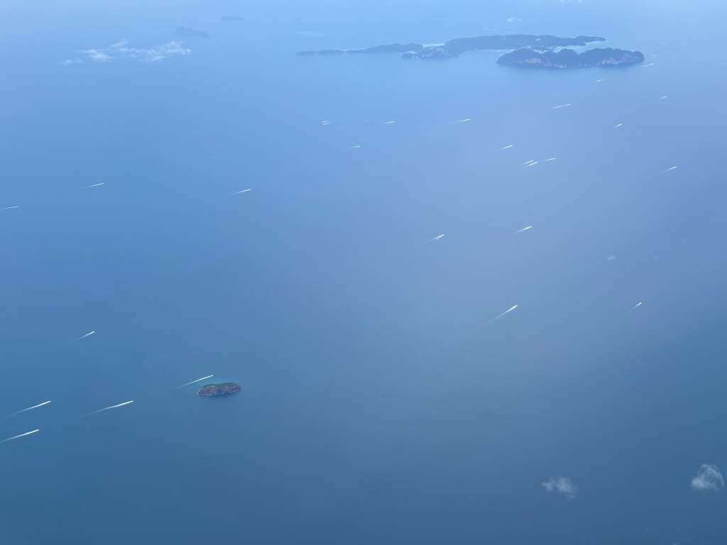 I got a few photos from the airplane as we flew out of Phuket. They show all the little islands dotted everywhere, and all the boats heading out to the islands.